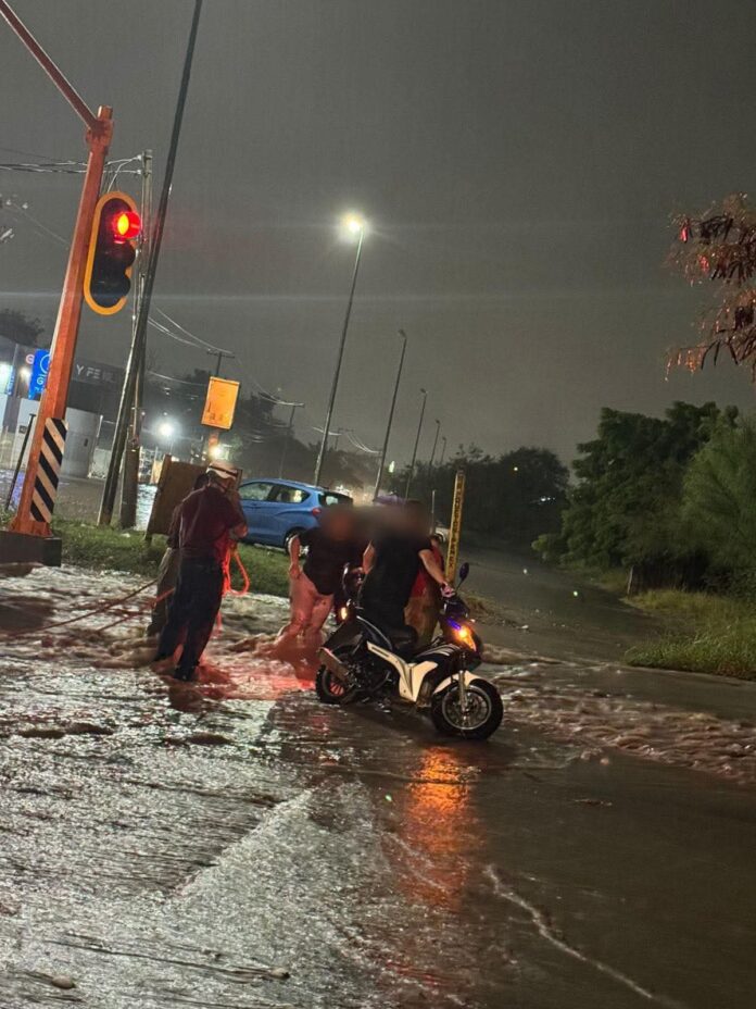 En otros sectores, como la avenida 26 Matamoros, la fuerte precipitación provocó accidentes de motociclistas que cayeron al suelo al circular sobre pavimento resbaladizo. Asimismo, se observaron alcantarillas que se desbordaron como fuentes, lo que evidenció la insuficiencia de la infraestructura pluvial ante lluvias intensas.