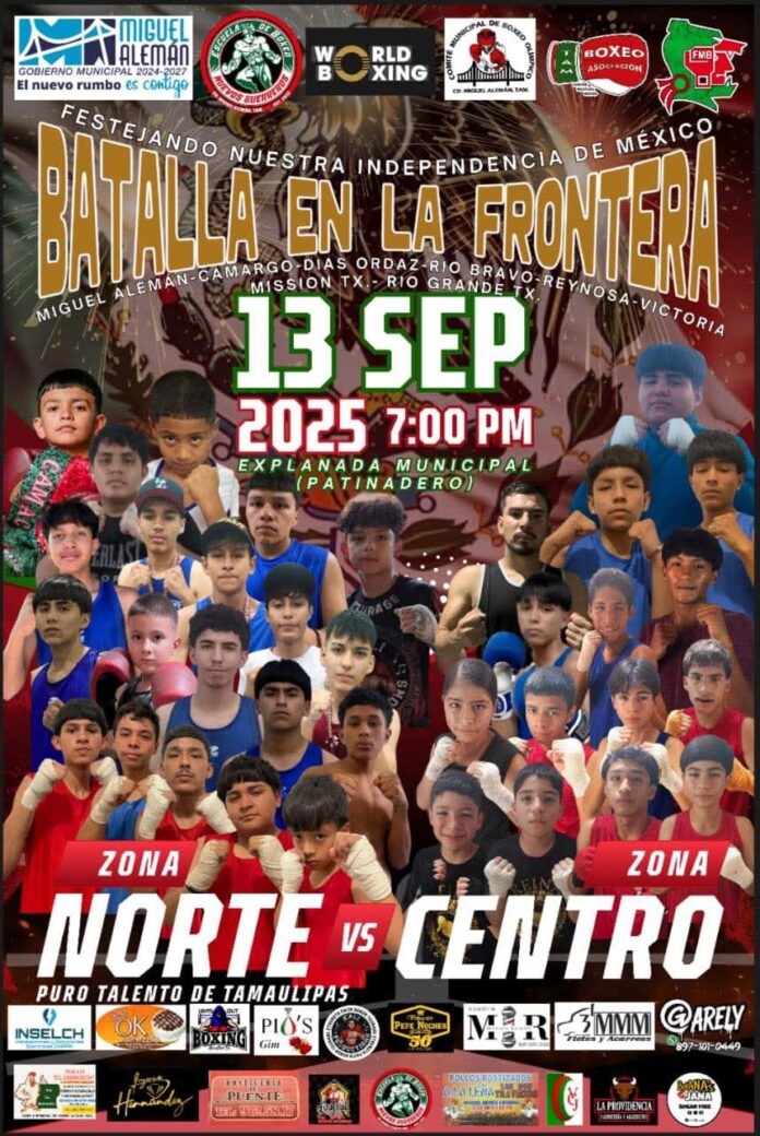 La Plaza Principal de Miguel Alemán se transformará este sábado 13 de septiembre en el escenario de la “Batalla en la Frontera”, un torneo de boxeo que reunirá a jóvenes talentos de la Zona Norte y Zona Centro de Tamaulipas, junto con representantes del Valle de Texas.