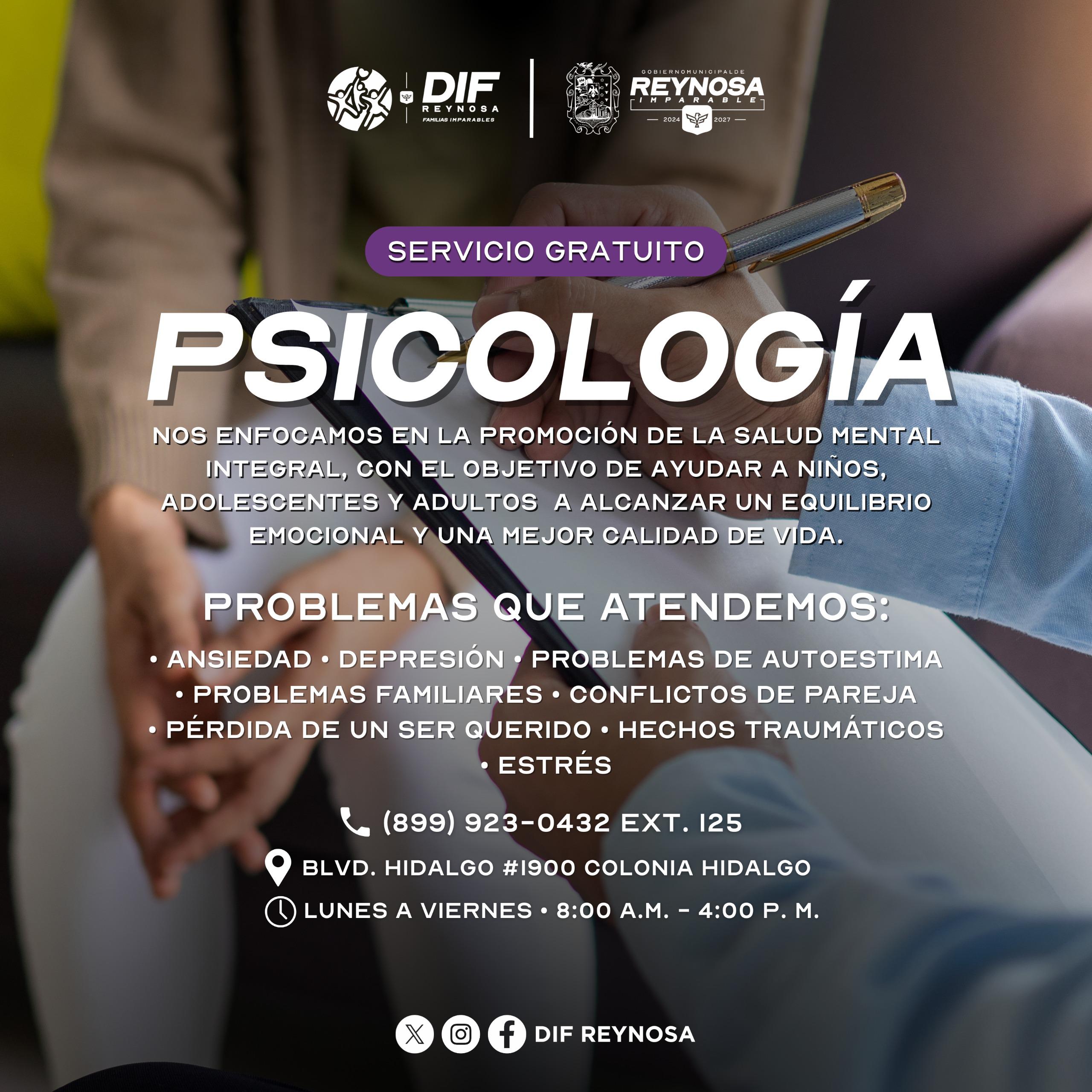 El Sistema DIF-Reynosa, que preside Carlos Luis Peña Garza fortalece la salud mental de las familias impulsando programas de apoyo integral a la comunidad, ofreciendo el servicio de psicología gratuito para niñas, niños, adolescentes y adultos a través del CRI.