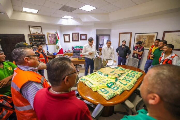El Alcalde Carlos Peña Ortiz entregó uniformes de futbol a integrantes del Sindicato de Trabajadores de Industria, Mantenimiento y Limpieza, con la finalidad de contribuir a su desarrollo deportivo en una actividad de disciplina y salud.