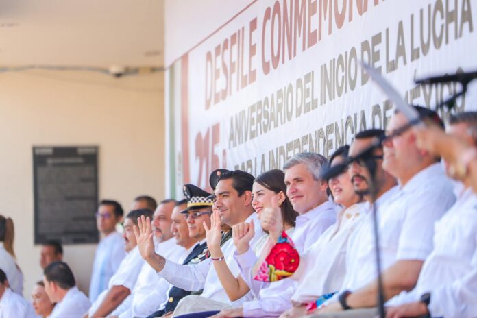 El Desfile Cívico-Militar, Conmemorativo del 215 Aniversario del Inicio de la Lucha por la Independencia de México fue presidido este martes 16 de septiembre por el Alcalde Carlos Peña Ortiz acompañado de su esposa, la Presidenta del Voluntariado DIF-Reynosa, Alejandra Yelitza Garza y por el Coronel de Caballería DEM Israel González Alatorre, Comandante del 19⁰ Regimiento de Caballería Motorizado y representante del General DEM Guillermo Arellano Morales, Comandante de la Octava Zona Militar.