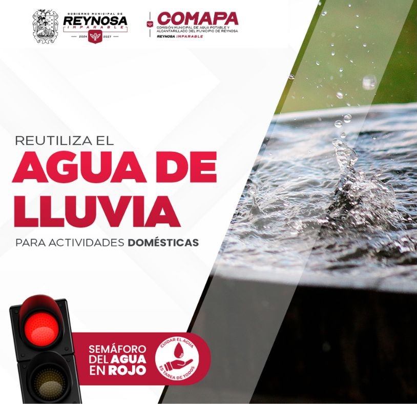 La Comisión Municipal de Agua Potable y Alcantarillado de Reynosa hace un llamado a la ciudadanía a reutilizar el agua de lluvia como una acción inmediata para contribuir al cuidado de este recurso vital.