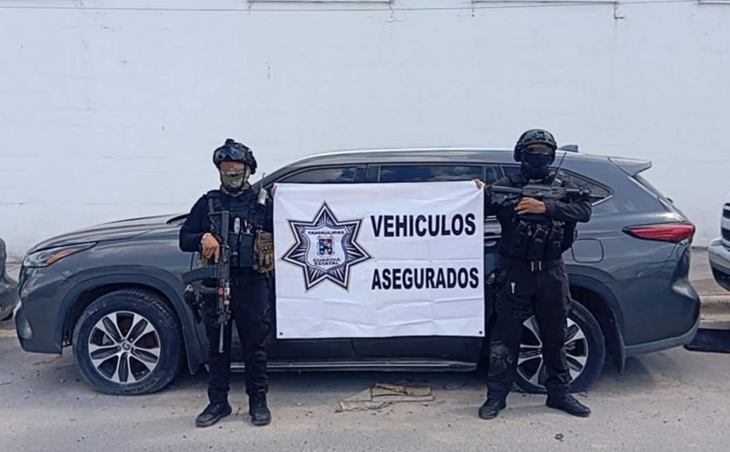 La Guardia Estatal aseguró una camioneta Toyota Highlander modelo 2021 con reporte de robo en Estados Unidos y 50 cartuchos calibre .50 BMG, durante un recorrido de vigilancia en la colonia Jarachina Norte, en Reynosa.