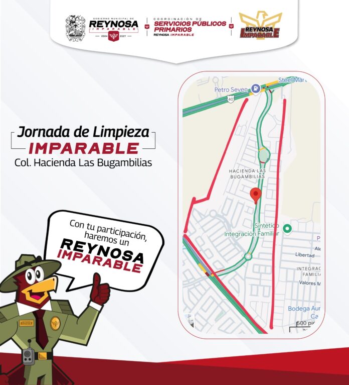 El Presidente Carlos Peña Ortiz programó para las familias de la colonia Hacienda Las Bugambilias la Jornada de Limpieza Imparable durante los días miércoles 1, jueves 2 y viernes 3 de octubre, un servicio gratuito que incluye la recolección de sillas, colchones, muebles inservibles en general.