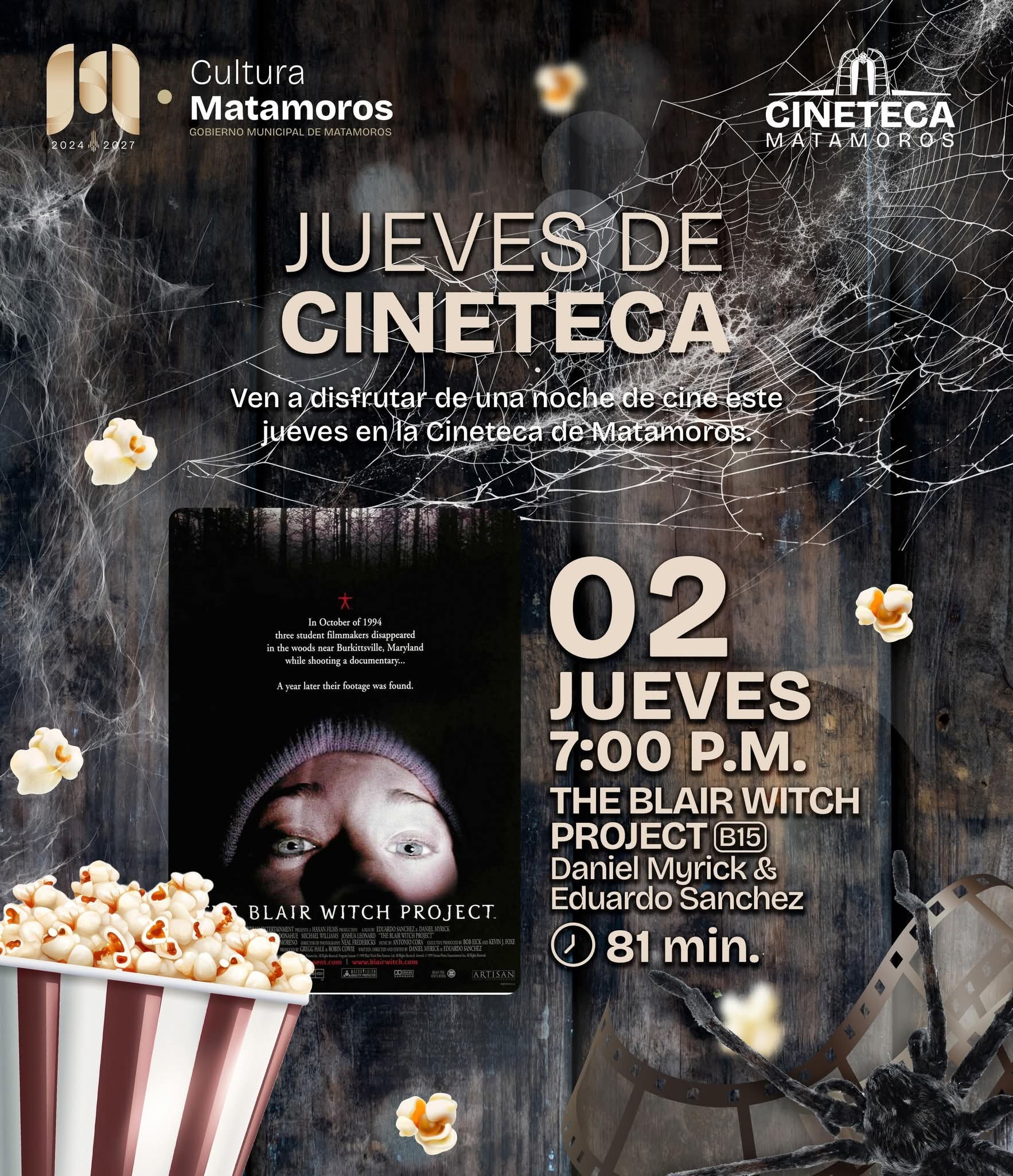 El alcalde de Matamoros, Beto Granados, invitó a la ciudadanía a disfrutar de una cartelera cultural que combina cine, música y tradición durante el mes de octubre. La noche de este jueves, el programa “Jueves de Cineteca” presenta la icónica cinta “The Blair Witch Project”, dirigida por Daniel Myrick y Eduardo Sánchez, en el edificio del Parque Olímpico. La función inicia a las 7:00 de la tarde y está dirigida a mayores de 15 años.