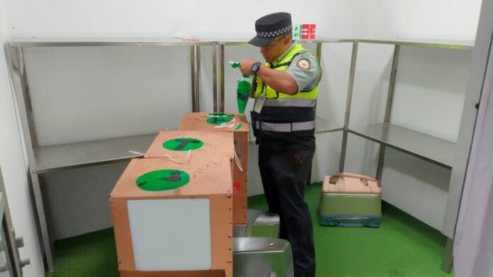 La Guardia Nacional aseguró tres avestruces en el Aeropuerto Internacional de Reynosa, luego de una inspección realizada en el área de paquetería. El hallazgo ocurrió cuando un binomio canino marcó tres cajas de madera con orificios a manera de respiraderos. Al revisarlas, los elementos confirmaron que contenían en su interior a las aves vivas.