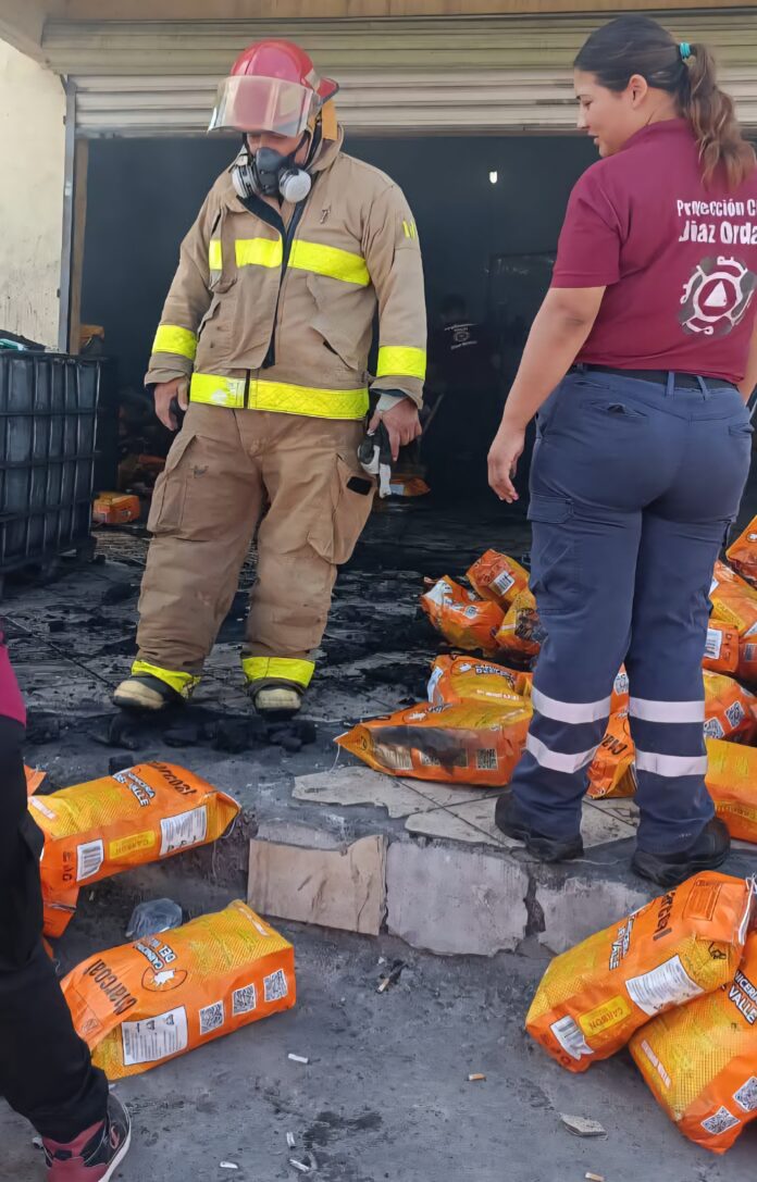 DÍAZ ORDAZ, TAM. – Elementos de Protección Civil y Bomberos atendieron este domingo un incendio registrado en una bodega ubicada en el poblado Valadeces, donde se desplegó de inmediato un operativo para controlar las llamas y evitar su propagación a estructuras cercanas.