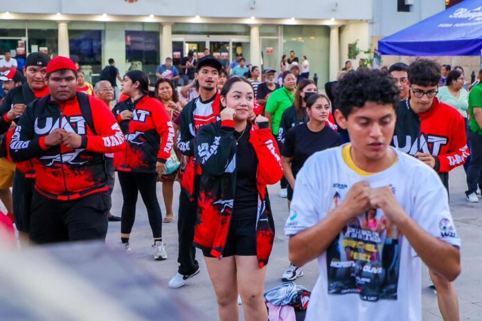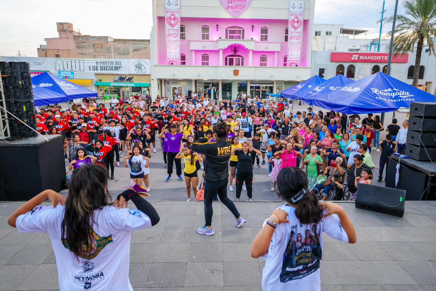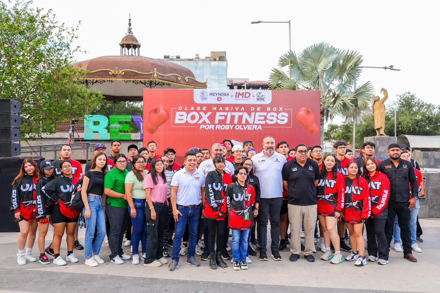 Disfrutaron cientos de reynosenses una cátedra de Box Fitness que el Alcalde Carlos Peña Ortiz, puso a disposición de la población, impartida en la plaza principal Miguel Hidalgo, por Rosy Olvera, entrenadora del WBC, Consejo Mundial de Boxeo.