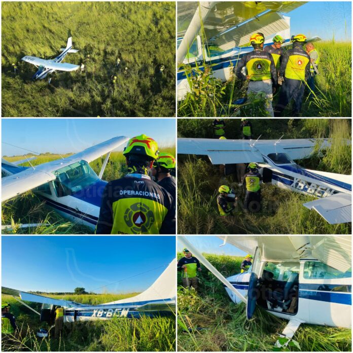 Momentos de tensión vivieron tres tripulantes de una avioneta Cessna con matrícula XB-BCW, luego de que la aeronave realizara un aterrizaje forzoso en un rancho del municipio de Aldama, Tamaulipas. El incidente ocurrió el viernes en el rancho “Los Pavos”, ubicado en el ejido Aquiles Serdán, según confirmó la Vocería de Seguridad del Estado.