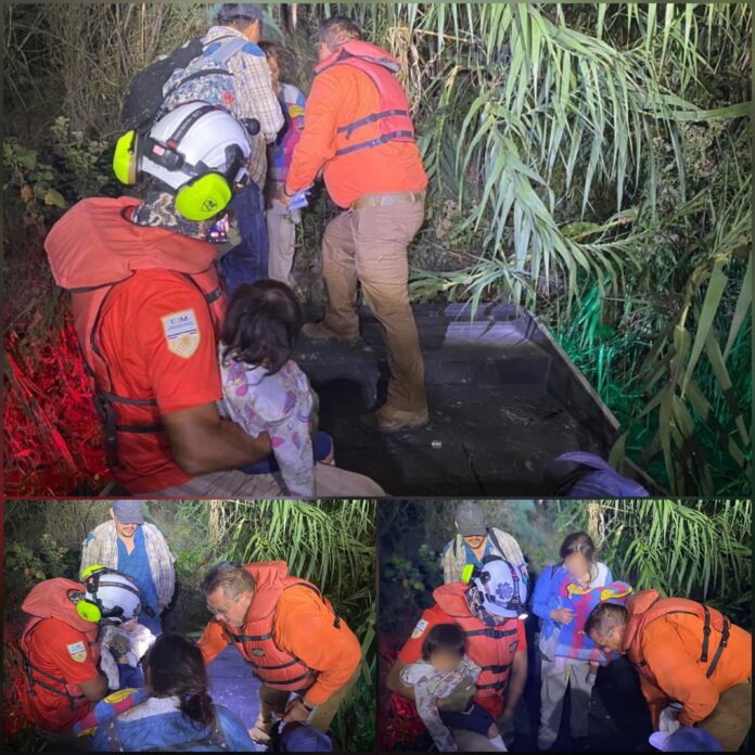 Una familia guatemalteca compuesta por cinco integrantes, entre ellos tres niños y una mujer con ocho meses de embarazo, fue rescatada durante la madrugada del martes por agentes del Instituto Nacional de Migración (INM), tras permanecer tres días extraviada en la ribera del Río Bravo.