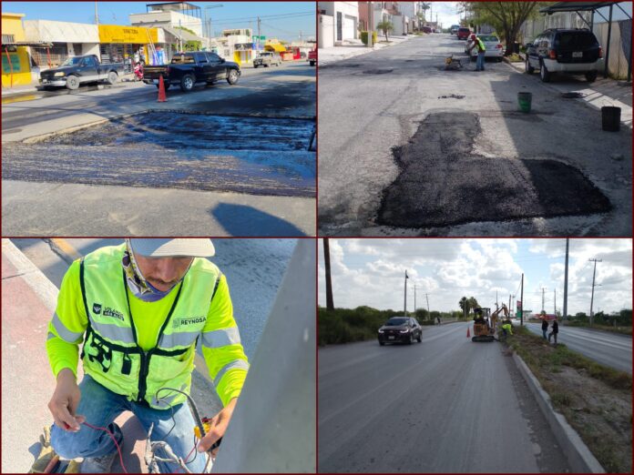Con el firme propósito de ofrecer mejores condiciones de movilidad y seguridad, el Gobierno Municipal de Reynosa, bajo la dirección del alcalde Carlos Peña Ortiz, intensifica los trabajos de bacheo y modernización del alumbrado público en puntos clave de la ciudad.