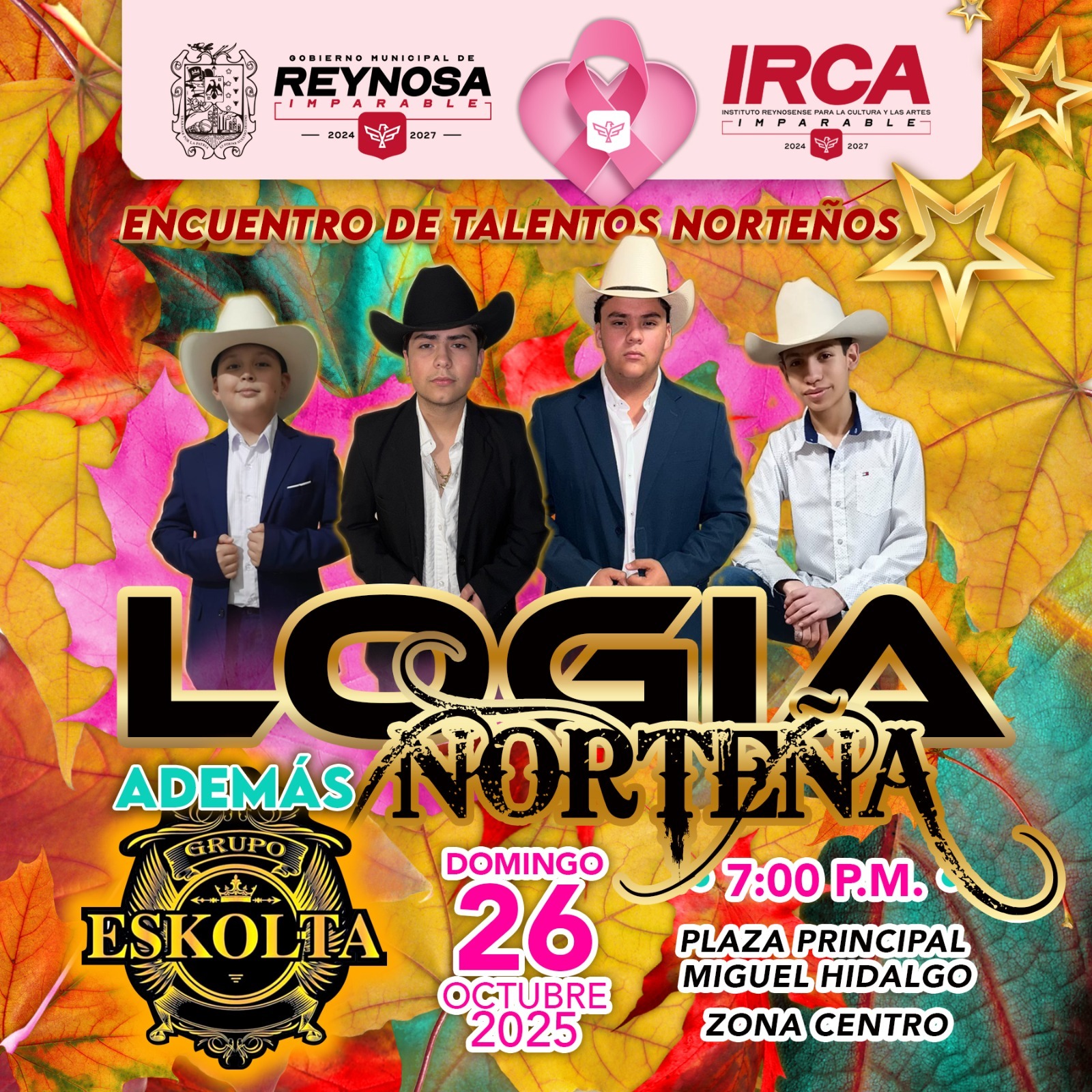 Y para cerrar con broche de oro, el mismo domingo a las 7:00 P. M., la plaza Miguel Hidalgo recibirá un encuentro de talentos norteños con la participación de los grupos Logia Norteña y Eskolta, que prometen poner a cantar y bailar a todos.