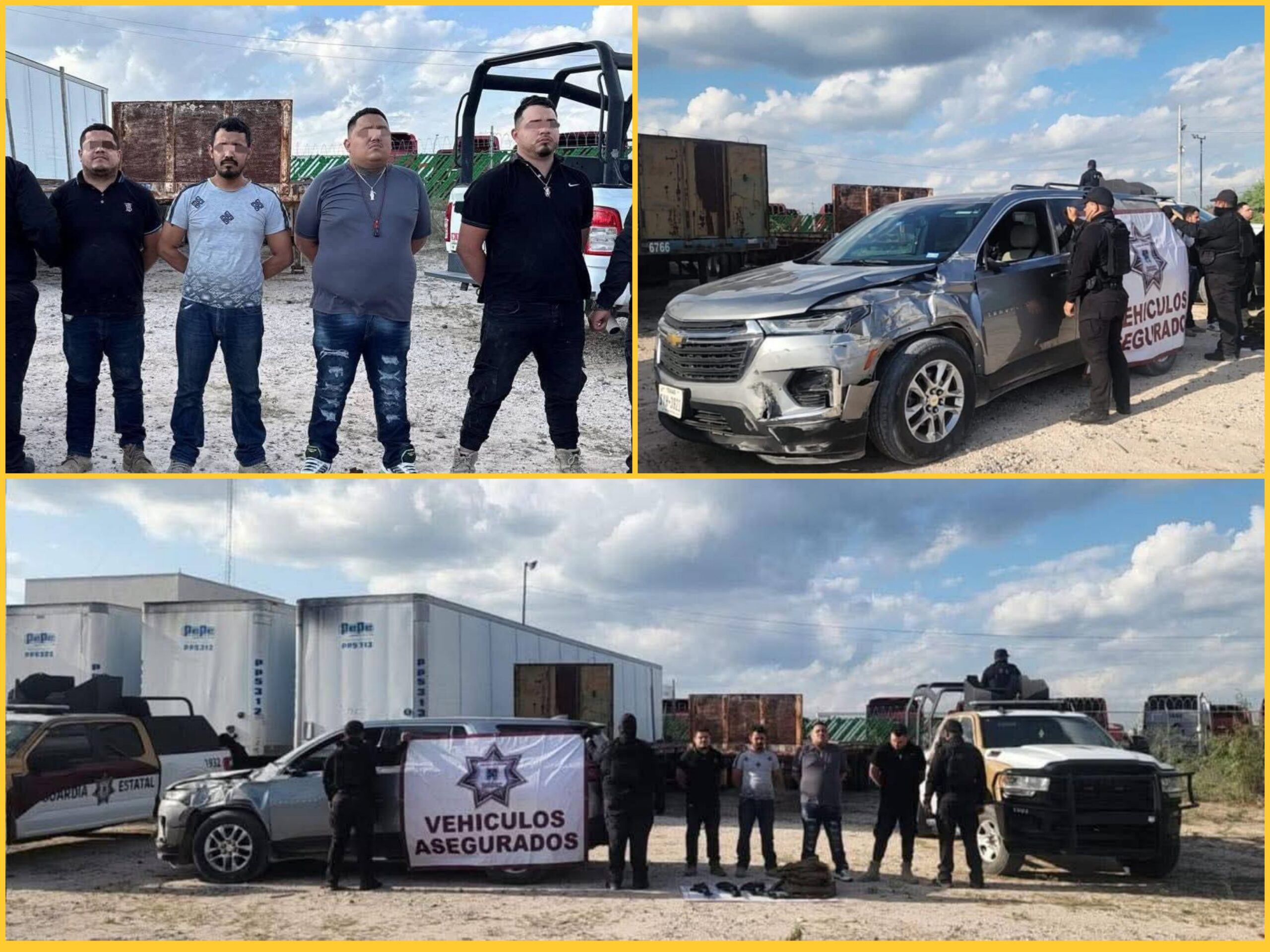 De acuerdo con el informe oficial, los agentes realizaban recorridos de vigilancia cuando detectaron un vehículo sospechoso y le dieron seguimiento hasta un estacionamiento de tráileres, donde lograron interceptar a los cuatro ocupantes, quienes portaban armas largas.