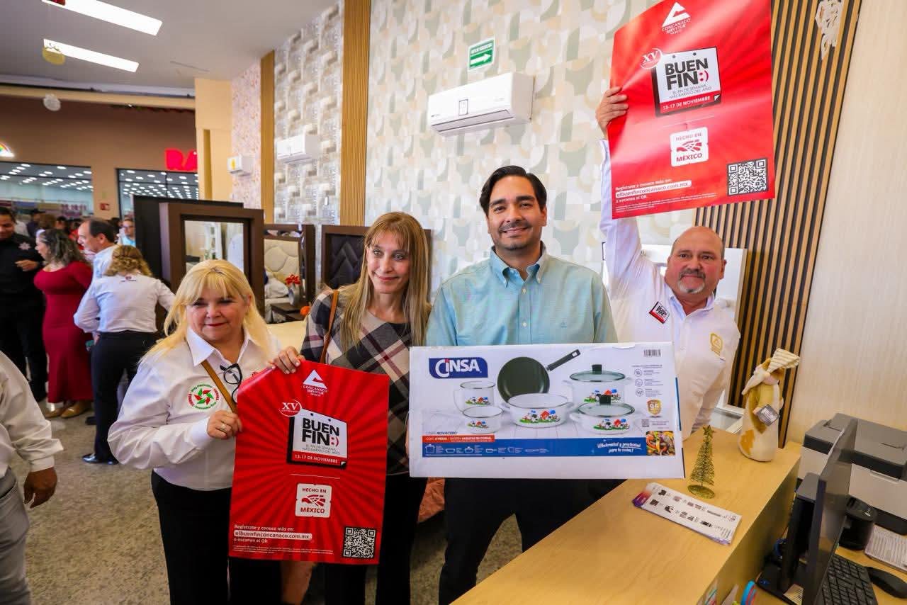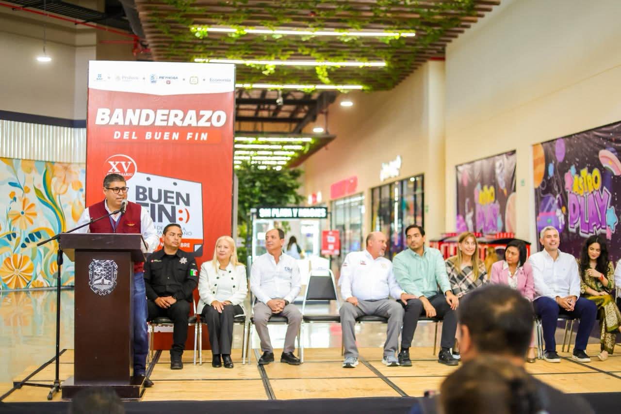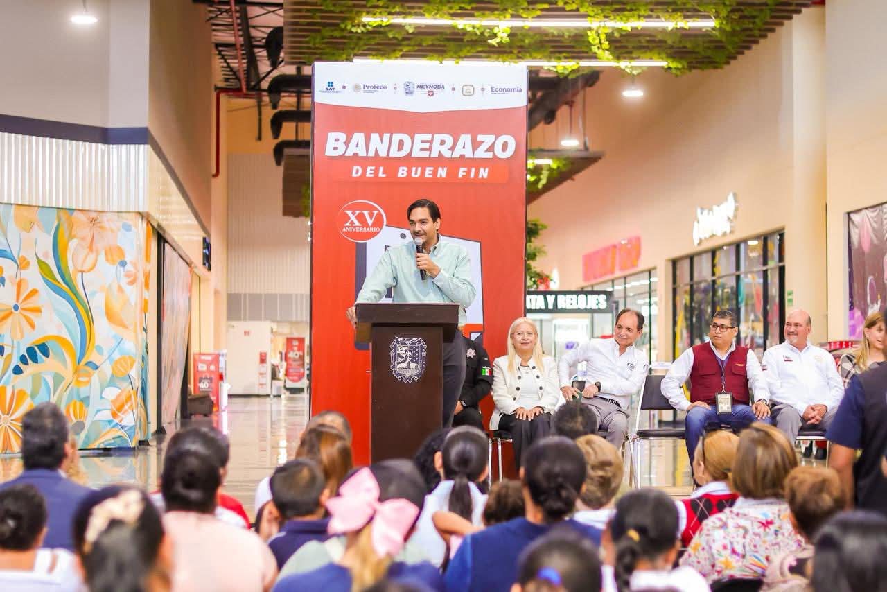 «Buscamos que a la gente, a los comercios les vaya bien, por eso tenemos que trabajar en equipo sociedad, gobierno, comercios; agradecemos muchísimo que nos acompañen, aprovechen, este Buen Fin hay muchísimos descuentos en comercios afiliados a la CANACO», declaró el Alcalde para dar el banderazo de inicio junto al Director de PROFECO Noreste, José Luis Márquez Sánchez.
