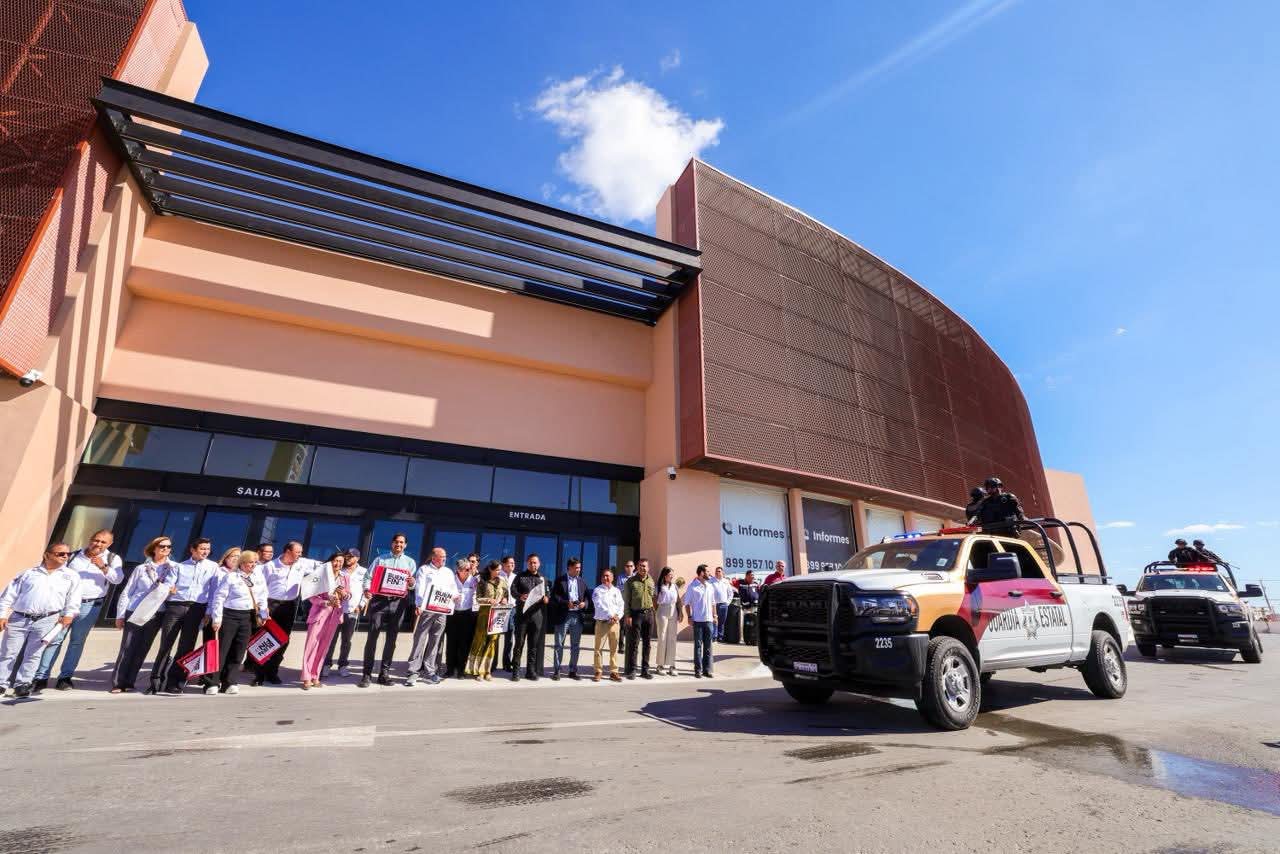 El Presidente Carlos Peña Ortiz dio la señal de inicio al Operativo de Seguridad Buen Fin 2025, acompañado por la Senadora Maki Esther Ortiz Domínguez; por el líder de la CANACO local, Gildardo López Hinojosa; por el Fiscal de Distrito Abel Ramírez González y el Policía A, Jesús Torres Castillo, Delegado de la Guardia Estatal.