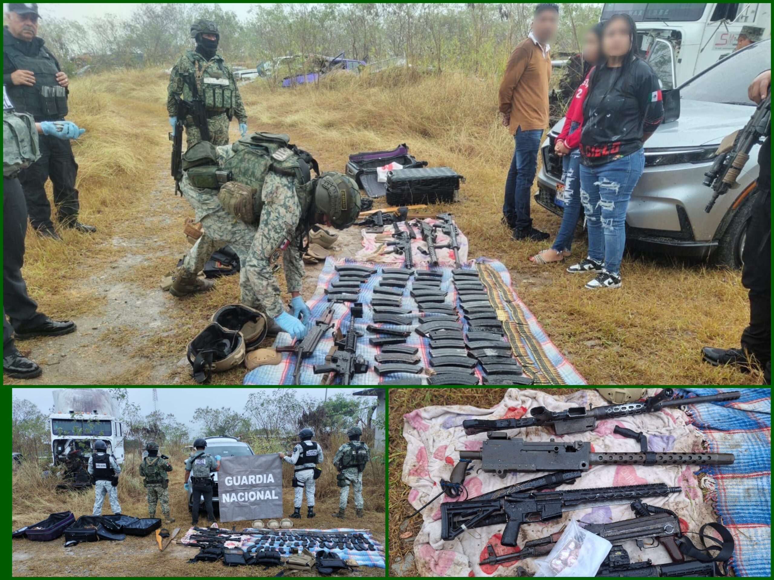 Elementos de la Guardia Nacional, en coordinación con la Secretaría de la Defensa Nacional (Sedena), detuvieron a tres presuntos integrantes de una célula criminal en el municipio de El Mante, donde además lograron el decomiso de un arsenal y un vehículo con reporte de robo. Entre los capturados se encuentra una menor de edad, confirmaron autoridades del gabinete de seguridad.