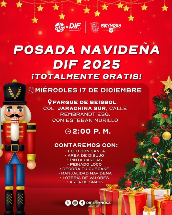 El Sistema DIF-Reynosa que preside Carlos Luis Peña Garza, realizará la Posada Navideña 2025 con el objetivo de fortalecer la convivencia familiar y llevar momentos de alegría a niñas, niños y familias de la colonia Jarachina Sur y sectores aledaños.