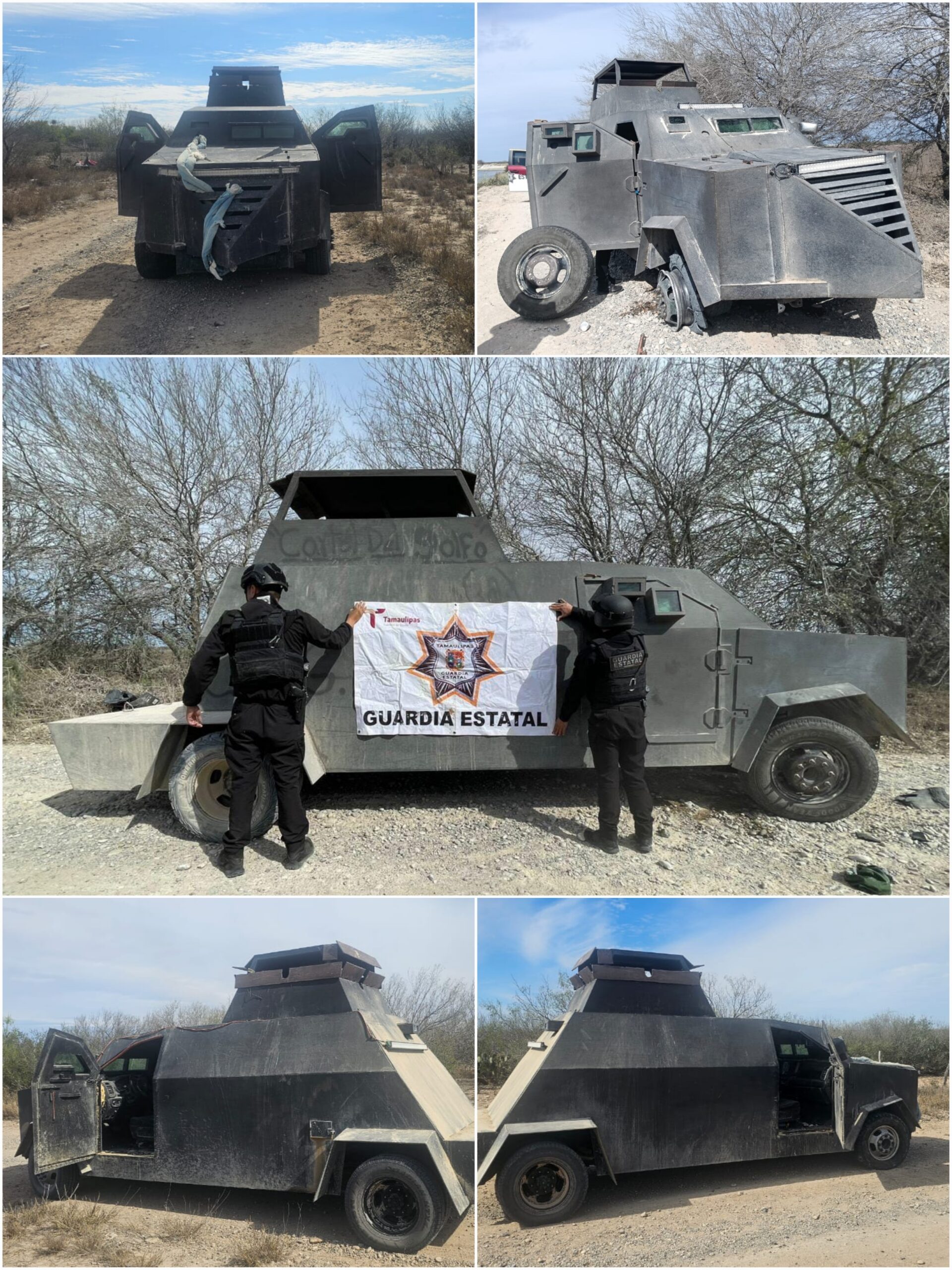 Como parte de las acciones permanentes de seguridad en la franja fronteriza de Tamaulipas, personal de la Guardia Estatal logró el aseguramiento de dos vehículos con blindaje artesanal, conocidos comúnmente como “monstruos”, en el municipio de Camargo, una zona considerada estratégica dentro de la llamada Frontera Grande.