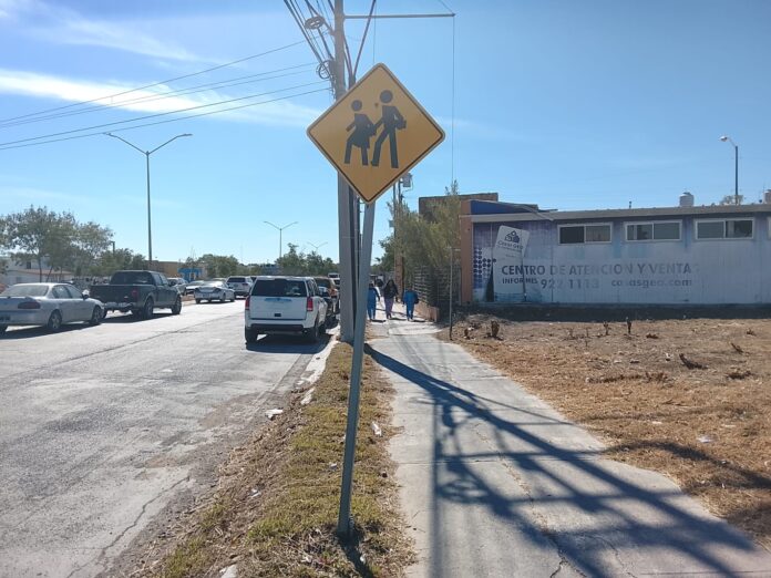 En atención a una petición ciudadana y por instrucciones del Presidente Municipal Carlos Peña Ortiz, el departamento de Ingeniería Vial del Gobierno de Reynosa instaló señalamientos de cruce escolar en la ubicación:
