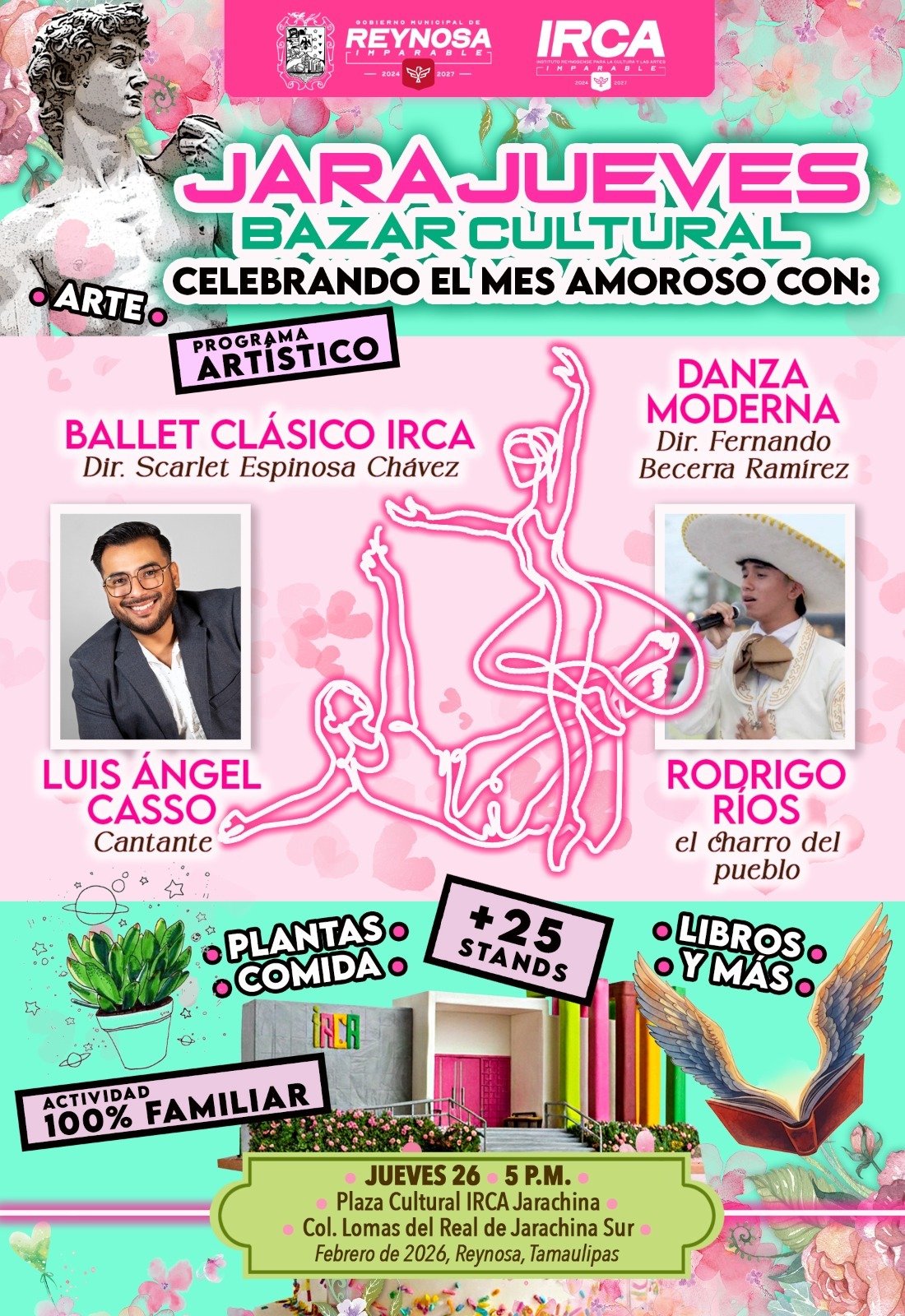 El Gobierno de Reynosa, que preside el Alcalde Carlos Peña Ortiz, invita a la comunidad a disfrutar este jueves 26 de febrero del tradicional Jarajueves, que se llevará a cabo en la Plaza Cultural IRCA Jarachina a las 5:00 P. M.