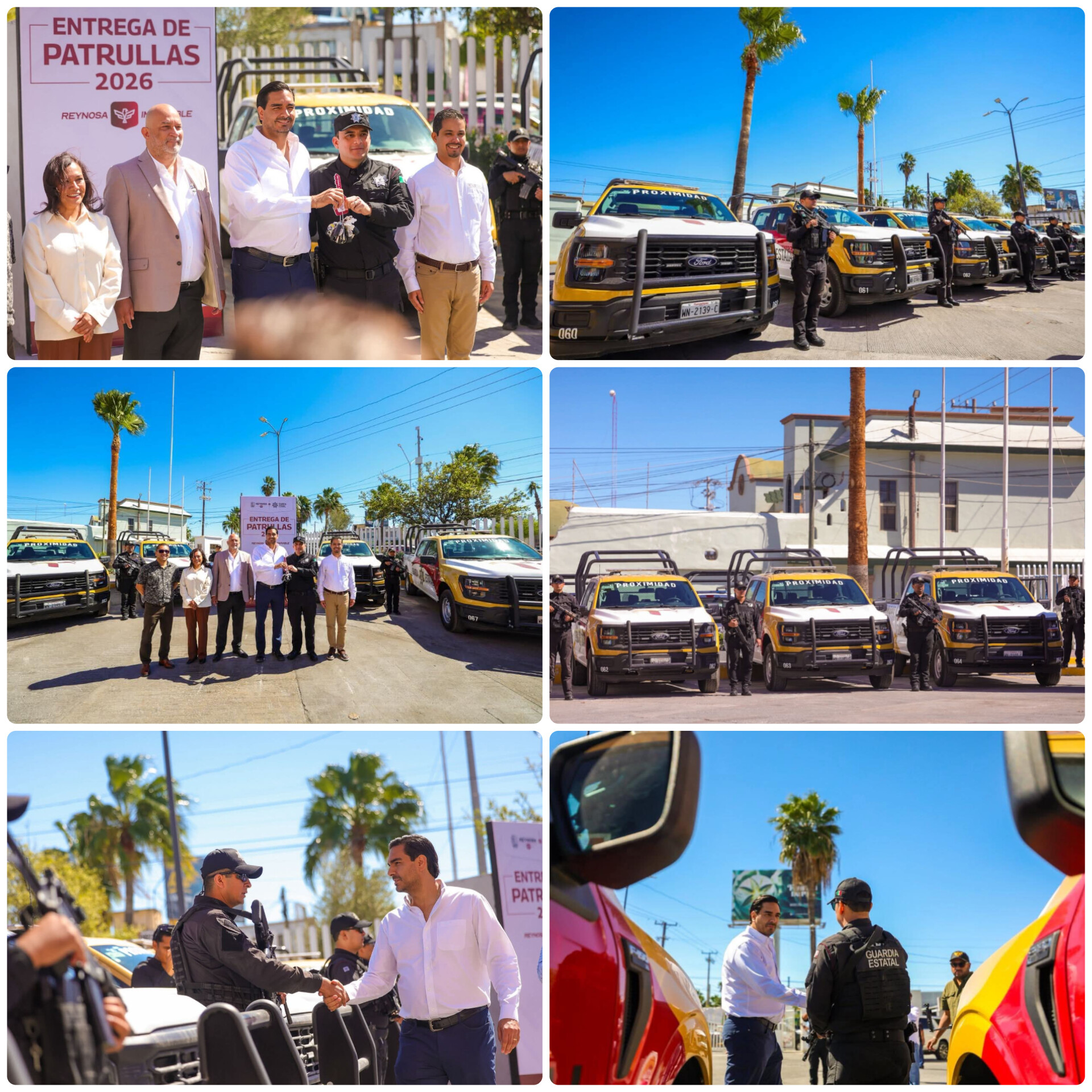 Con la finalidad de fortalecer las labores de vigilancia y garantizar mayor seguridad a las familias de Reynosa, el Presidente Municipal, Carlos Peña Ortiz, realizó la entrega de 12 patrullas modelo 2026 a la Policía de Proximidad Municipal de la Guardia Estatal de Tamaulipas.