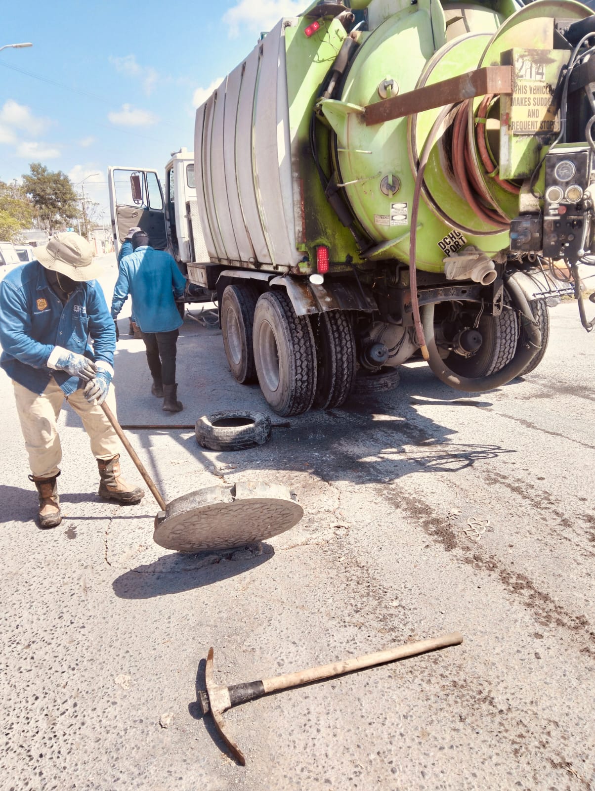 La Comisión Municipal de Agua Potable y Alcantarillado de Reynosa llevó a cabo labores de limpieza de pozos y sondeo de la línea general de drenaje sanitario en diversas calles de la colonia Balcones de Alcalá a fin de mejorar el funcionamiento de la red y prevenir obstrucciones.