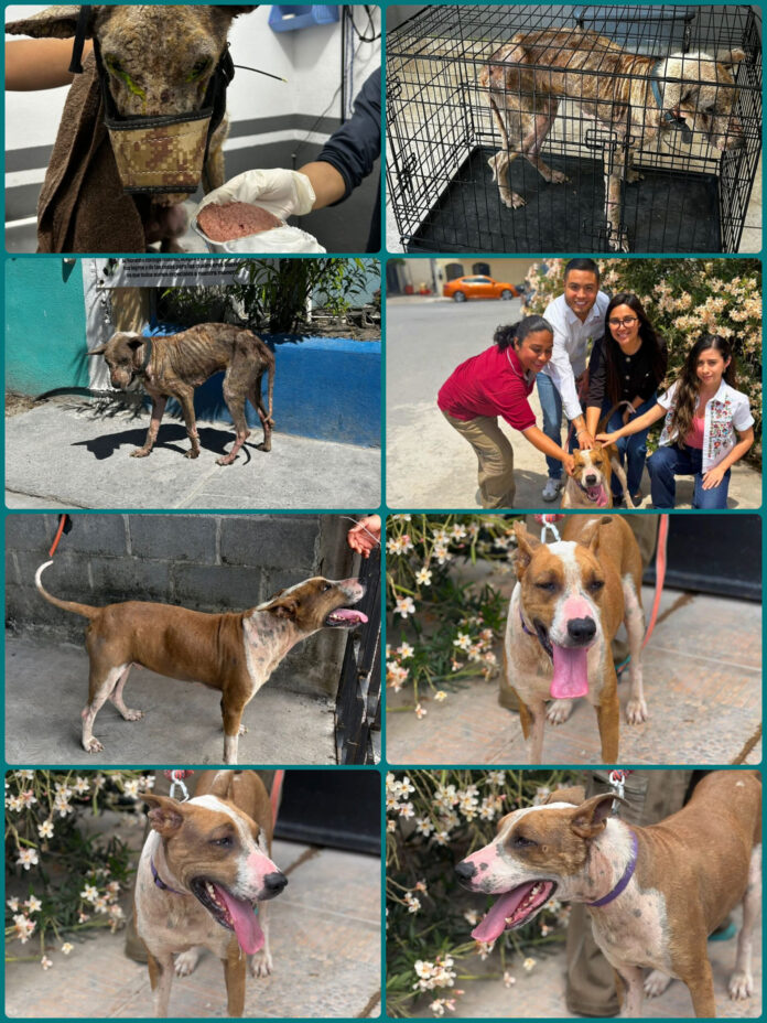 Al momento de su rescate, el can —identificado como “El Grande”— presentaba un estado de salud delicado, con roña en todo su cuerpo, rastros de erliquia y un cuadro que actualmente es atendido por gusano del corazón, padecimientos que requerían intervención médica especializada.