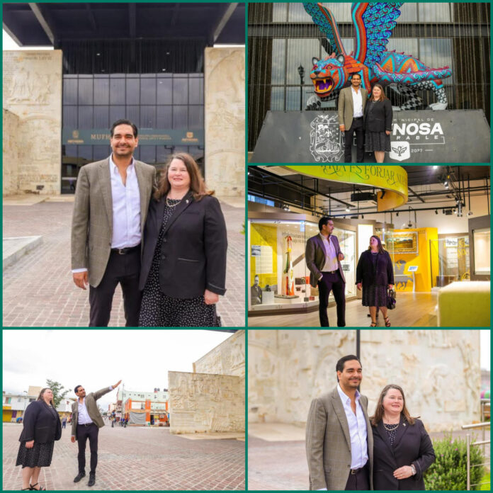 Como parte de su visita oficial, Mary Virginia Hantsch recorrió el Museo del Ferrocarril, Historia, Arte y Maquila, donde pudo conocer parte de la historia industrial y cultural que distingue a Reynosa. Este espacio representa un símbolo del desarrollo de la ciudad y su papel en la dinámica económica de la región.