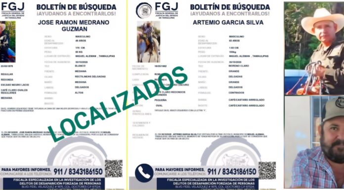 Rescatan con bien a Artemio García y José Ramón Medrano en Miguel Alemán
